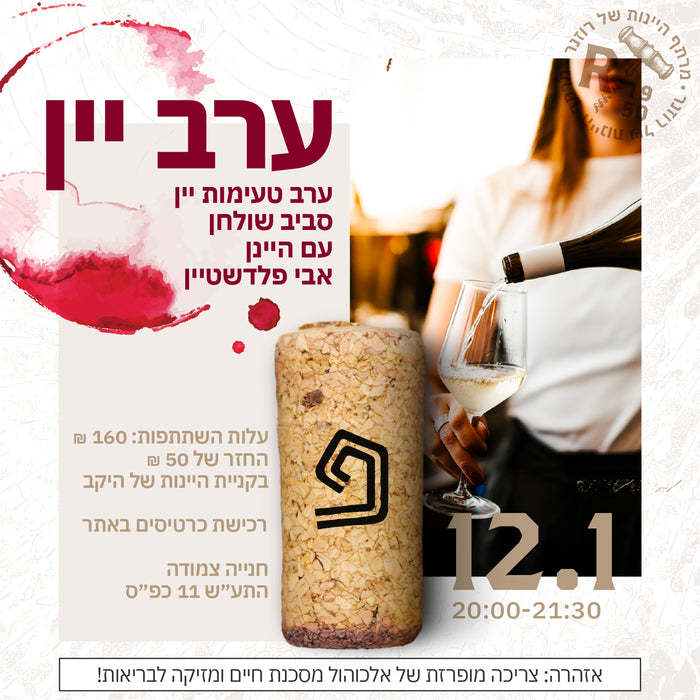 בתאריך ה 12/1 בשעה 20:00 ניפגש אצלינו בחדר הטעימה במרתף של רוזנר סביב שולחן אבירים עם היינן הראשי של יקב פלדשטיין - אבי פלדשטיין